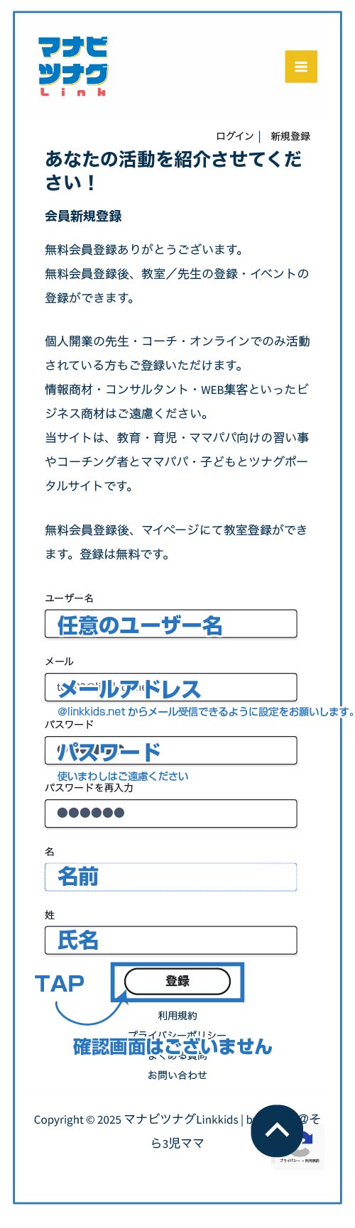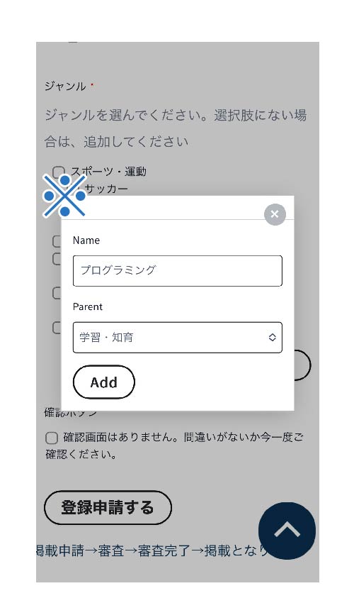 記載後、登録申請してください。確認画面はございません。間違いないか今一度ご確認ください。