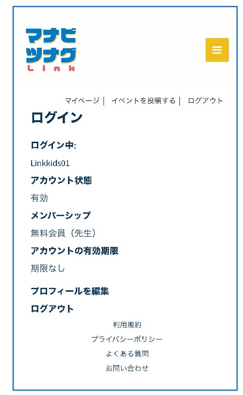 - プロフィール・・・ご自身の登録した情報を確認できます