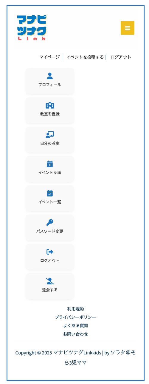 - 自分の教室・・・登録した教室を確認することができます