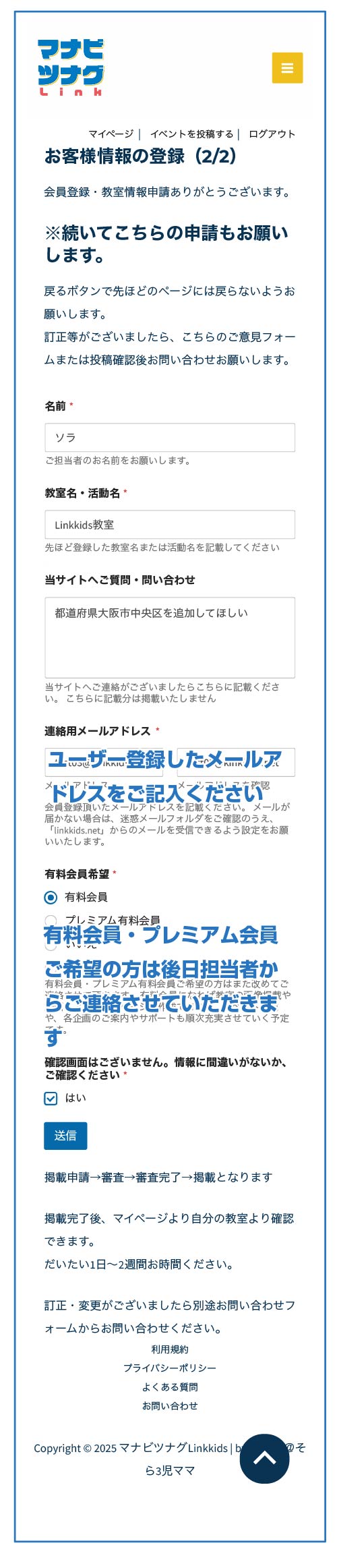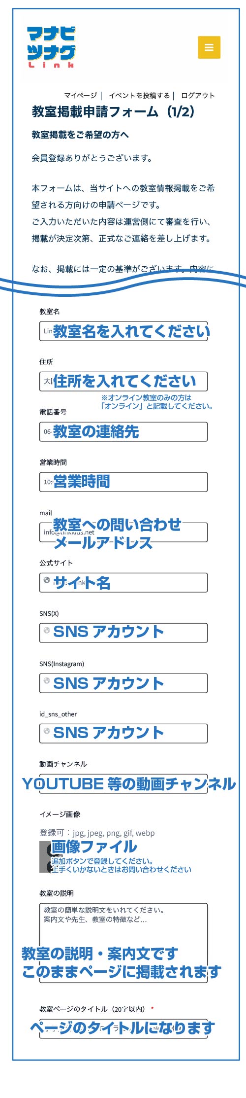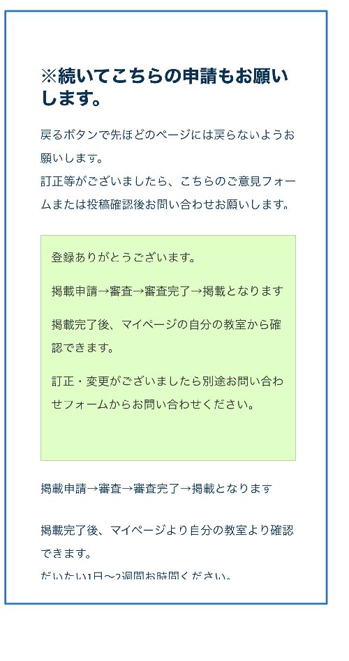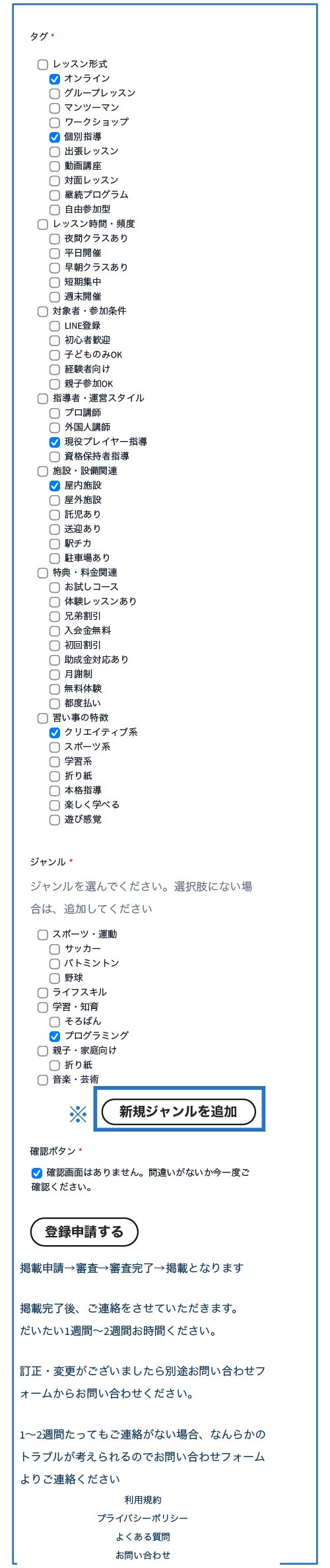 教室掲載申請フォーム(1/2)